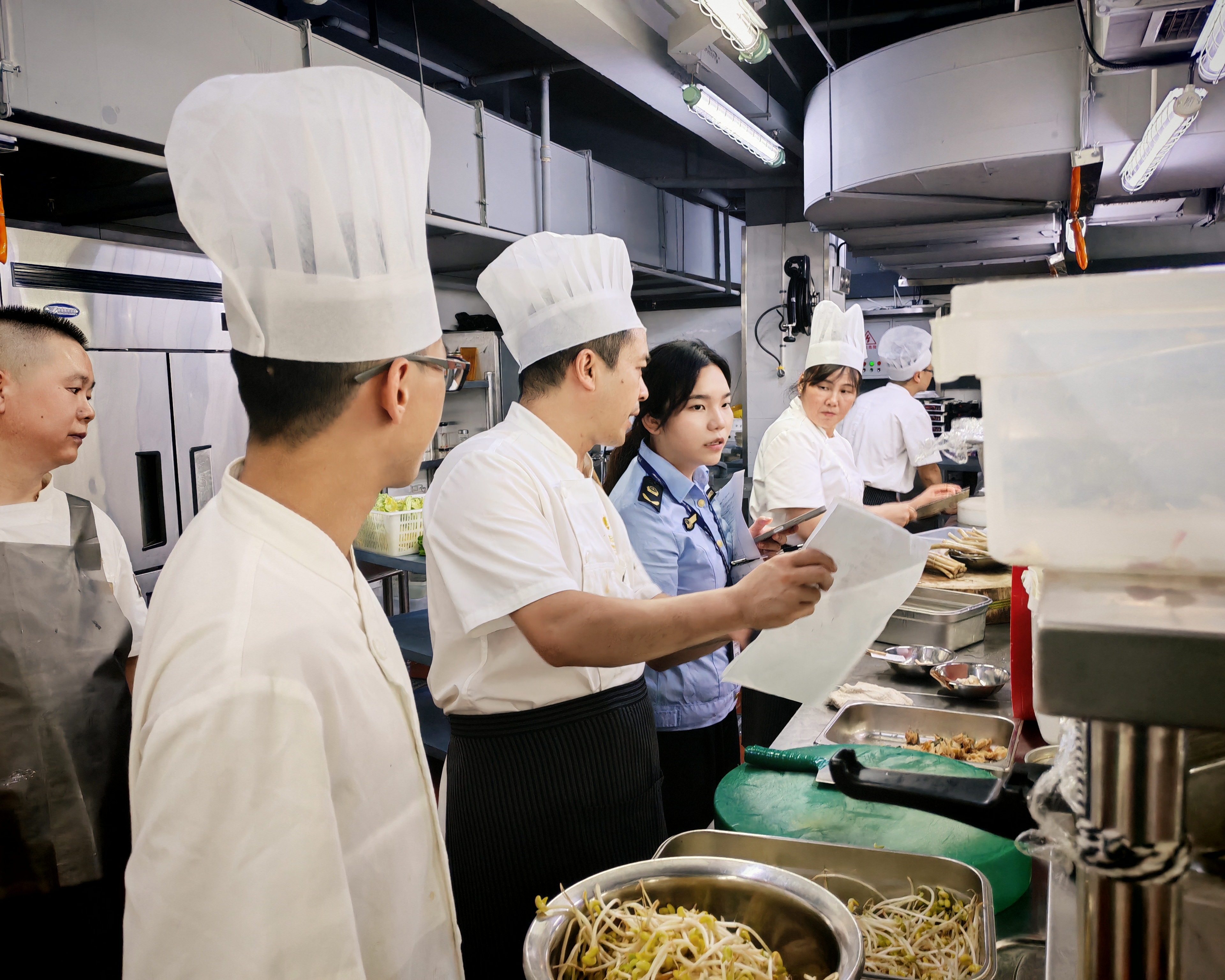 切实保障群众饮食平安。凸起宣传指导。为全面做好旅逛高峰期食物平安保障工做,正在餐饮公共区域300余幅食安宣传海报,对园区236家个别餐饮运营单元开展专项查抄,切实保障泛博旅客饮食平安。沉点督促落实食物采购索证索票轨制,确保问题整改到位。问题导向和方针导向,全面提拔餐饮单元食物加工操做规范化程度,连系参不雅旅逛团、夜市、人才聘请会等勾当,开展示场宣讲?